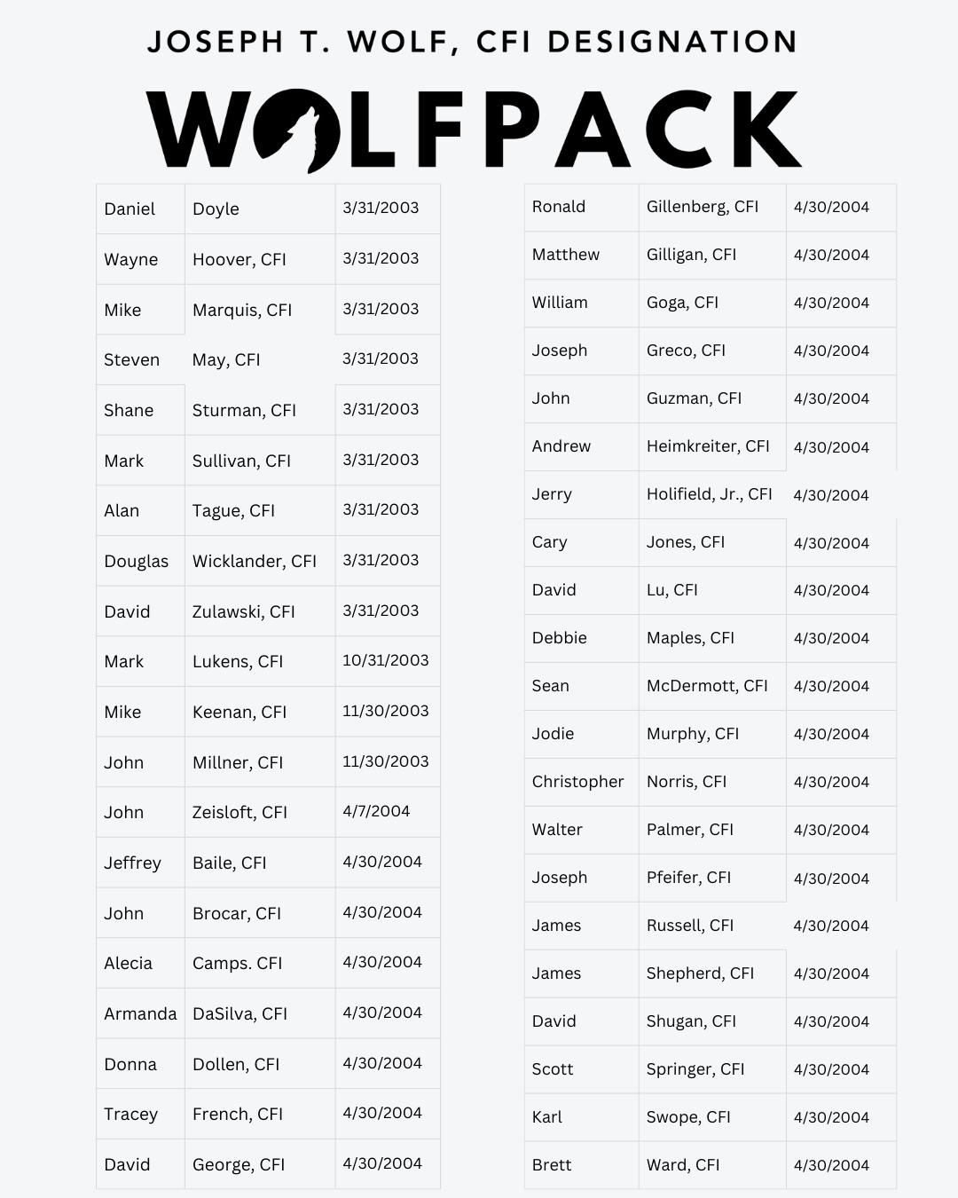 Joseph T. Wolf, CFI Designation